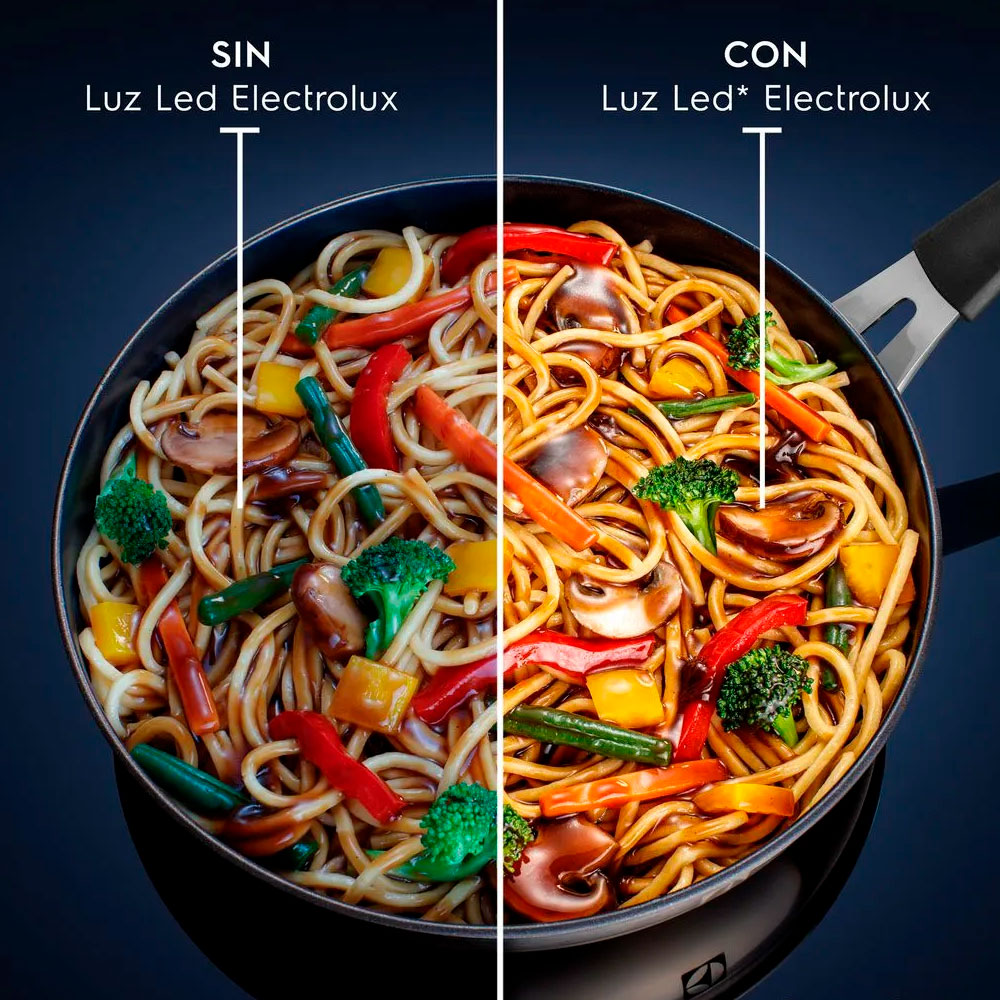 Cocinar se convierte en un placer cuando cuentas con una campana con Iluminación LED², que facilita la preparación de los alimentos, ya que proporciona mayor visibilidad y claridad durante el proceso, preservando los colores naturales de la comida mientras cocinas. La lámpara LED ahorra hasta un 97% de energía vs consumo de lámparas halógenas3.