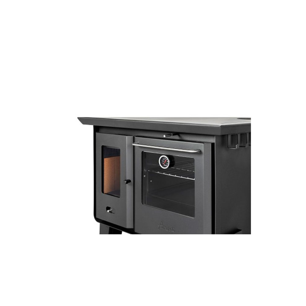 Esta cocina a leña de combustión lenta está diseñada para ofrecer un rendimiento superior a su competencia, con terminaciones de acabados increíbles y un horno con elementos interiores de hierro laminado que transfiere el calor a los recipientes de alimentos durante su funcionamiento con mayor eficiencia.
