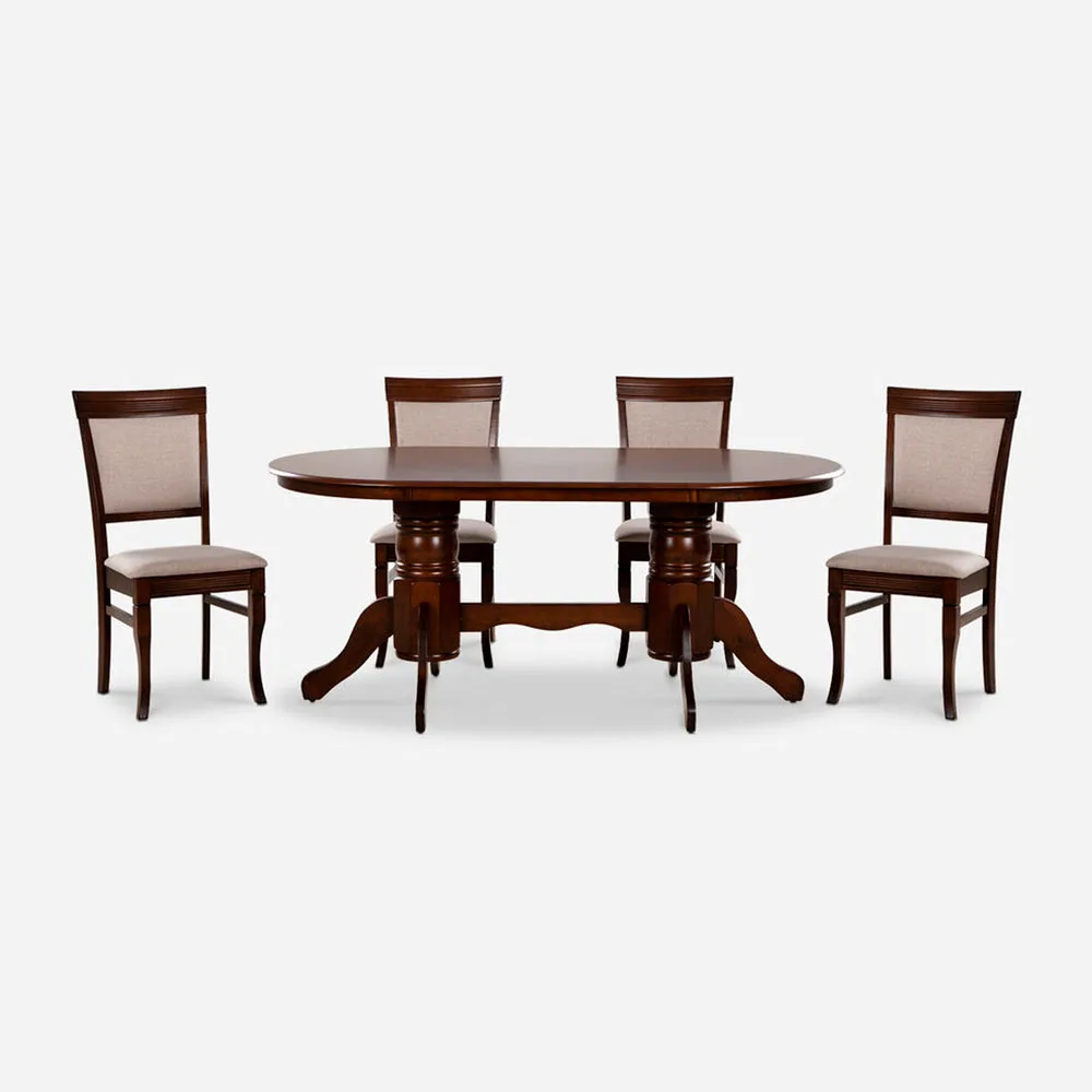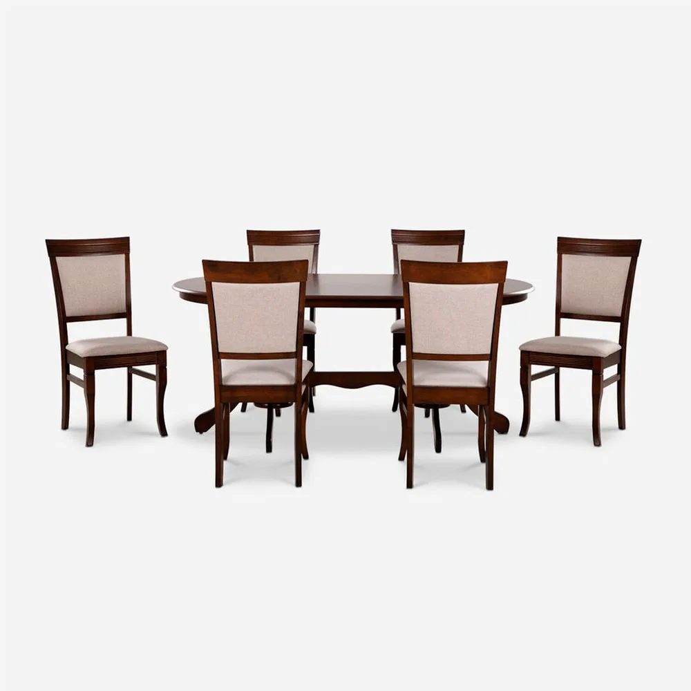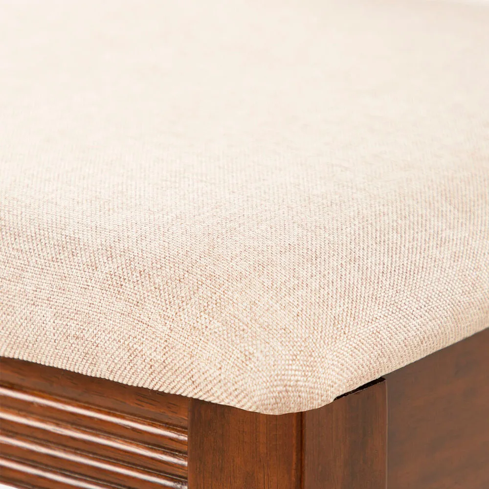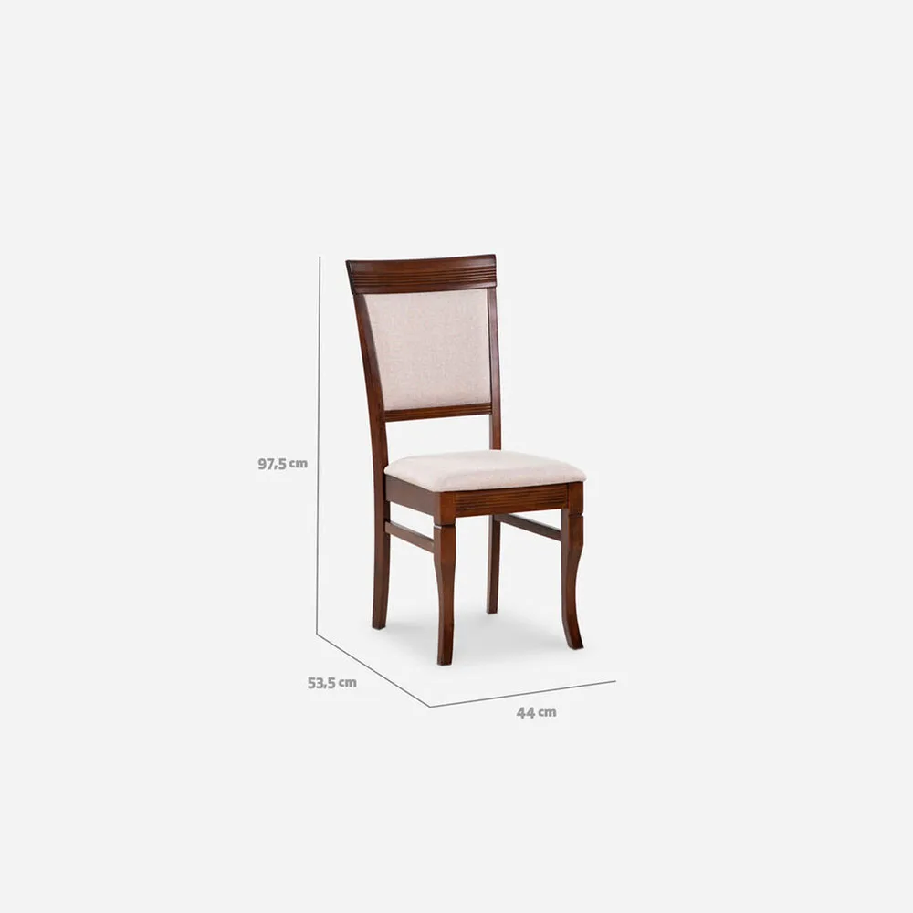 La combinación de MDF enchapado y patas torneadas en Rubberwood ofrece estabilidad a largo plazo. Las sillas están diseñadas para asegurar confort prolongado, con asiento acolchado y respaldo bien formado.