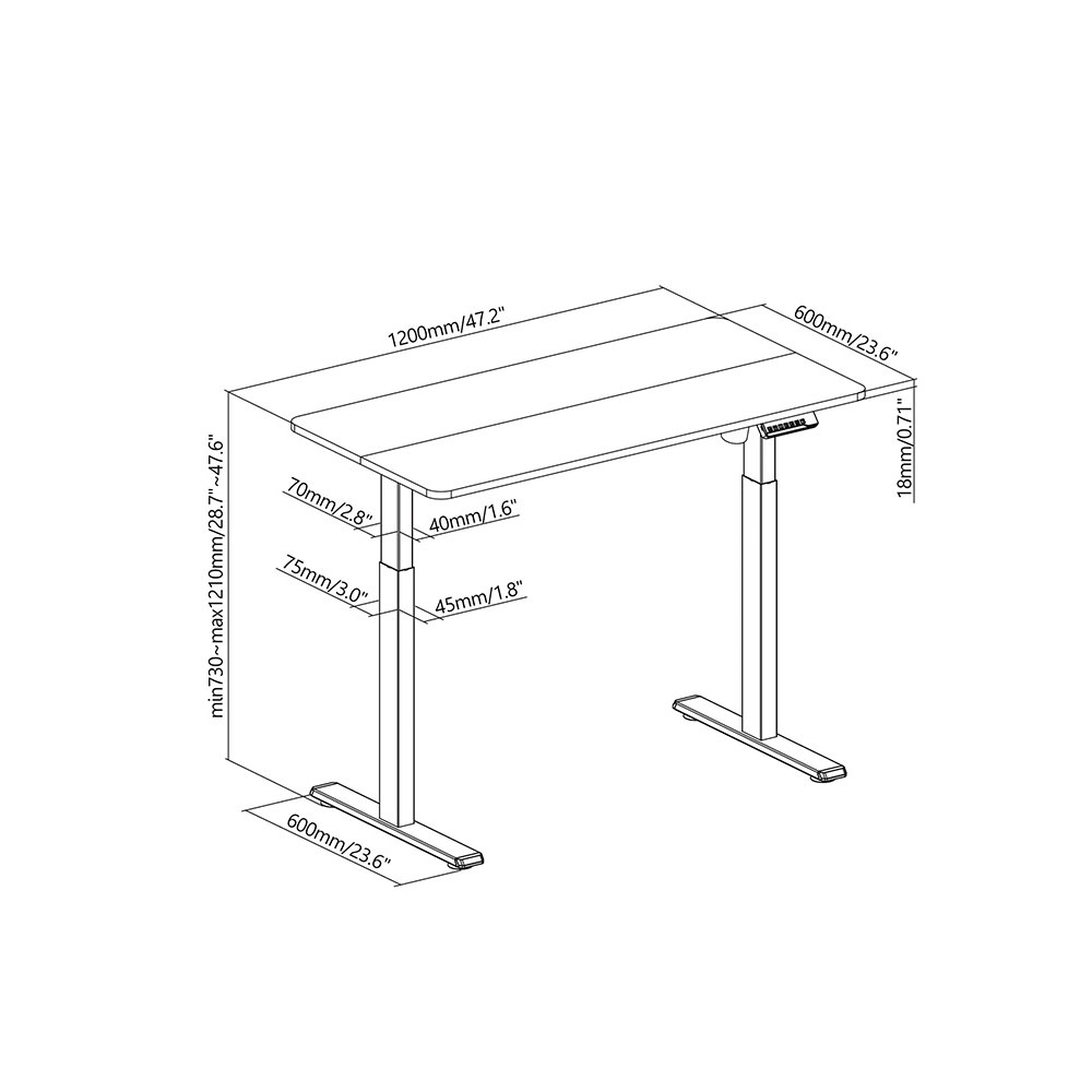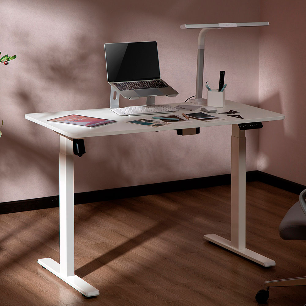 Escritorio regulable en altura New Prime, con cubierta de 120 x 60 cm. Se parte de la nueva tendencia en escritorio que permite trabajar y estudiar sentados y alternar con trabajo de pie. Mejora la productividad, concentración y estado físico.