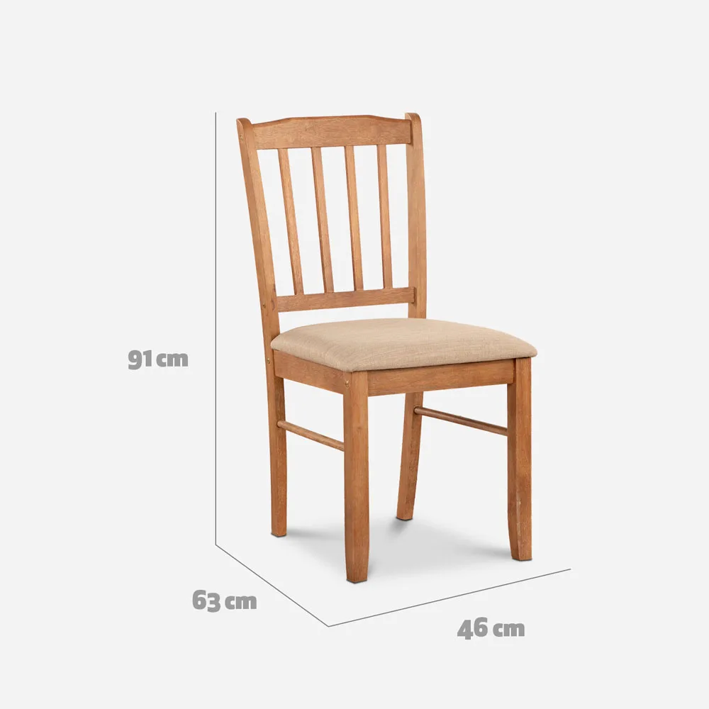 Cada silla cuenta con espuma de soporte y respaldo ergonómico, asegurando comodidad. El diseño se adapta perfectamente a cocinas integradas o living-comedor pequeños.