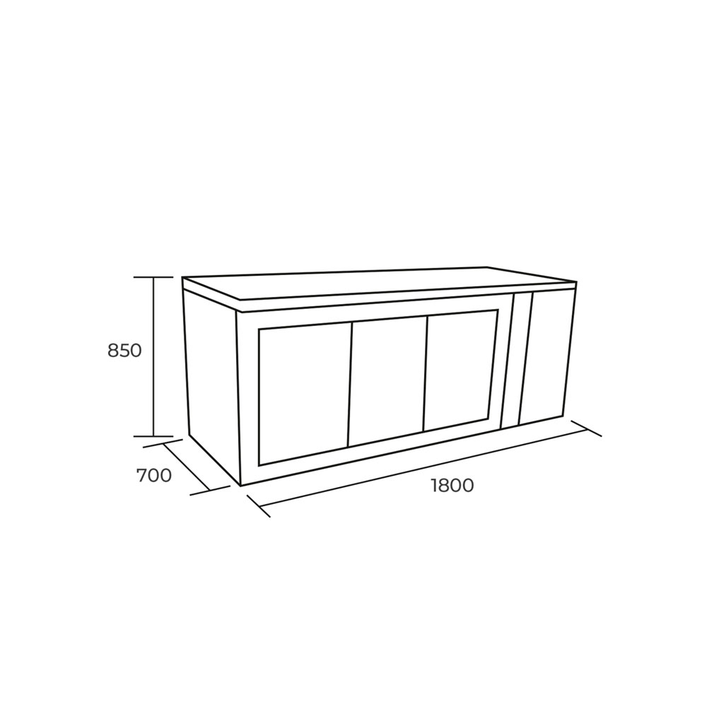 Dimensiones Producto (mm) 1800x700x850 Embalaje (mm) 1840x750x920 Peso neto (kg) 130 Peso bruto (kg) 140