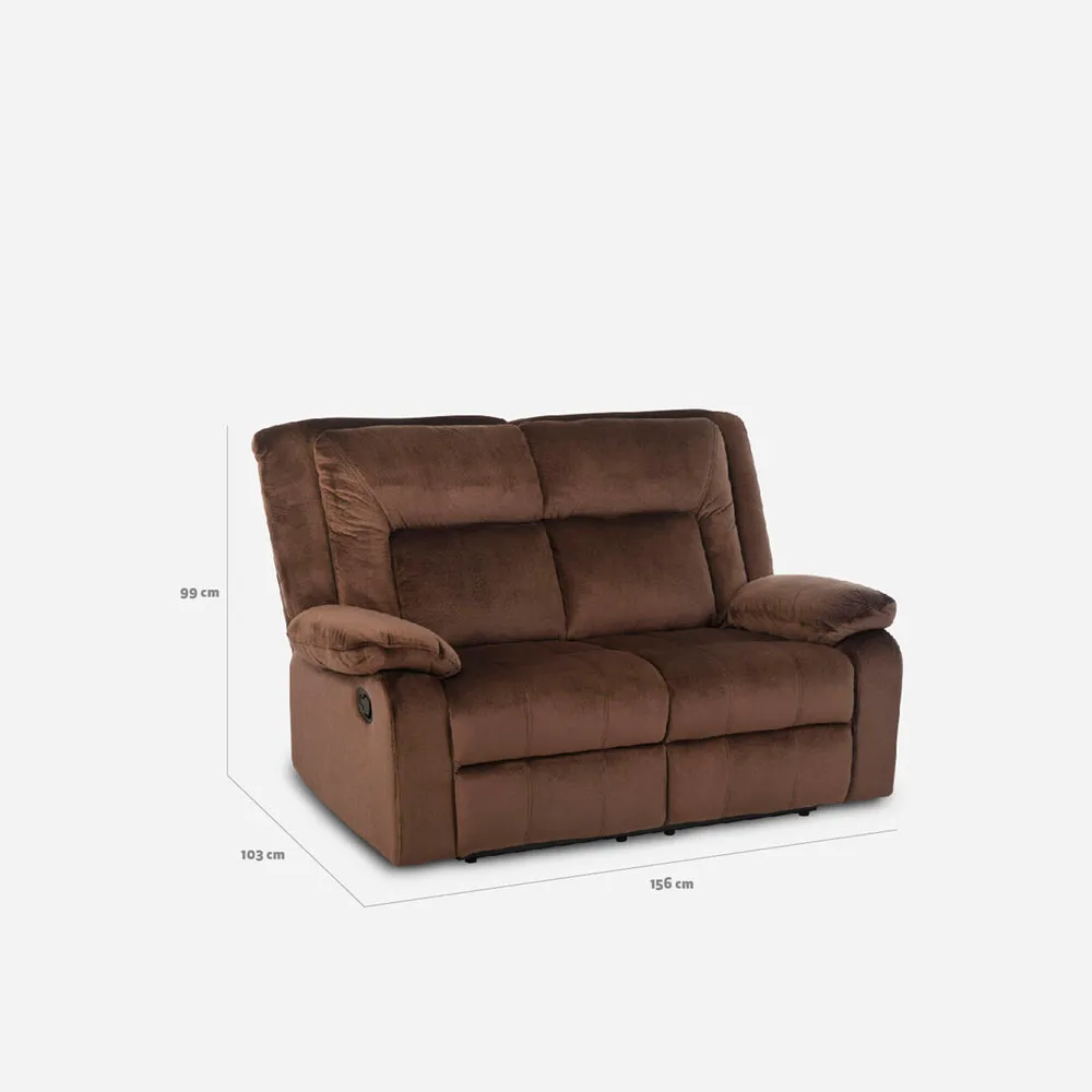 Su estructura firme de madera y plywood, combinada con un mecanismo de reclinación de metal, asegura una gran estabilidad y larga vida útil. Además, su tamaño de 156 cm de ancho lo hace perfecto para espacios medianos, sin dejar de ofrecer amplitud en sus asientos de 56 cm de profundidad y 48 cm de altura.