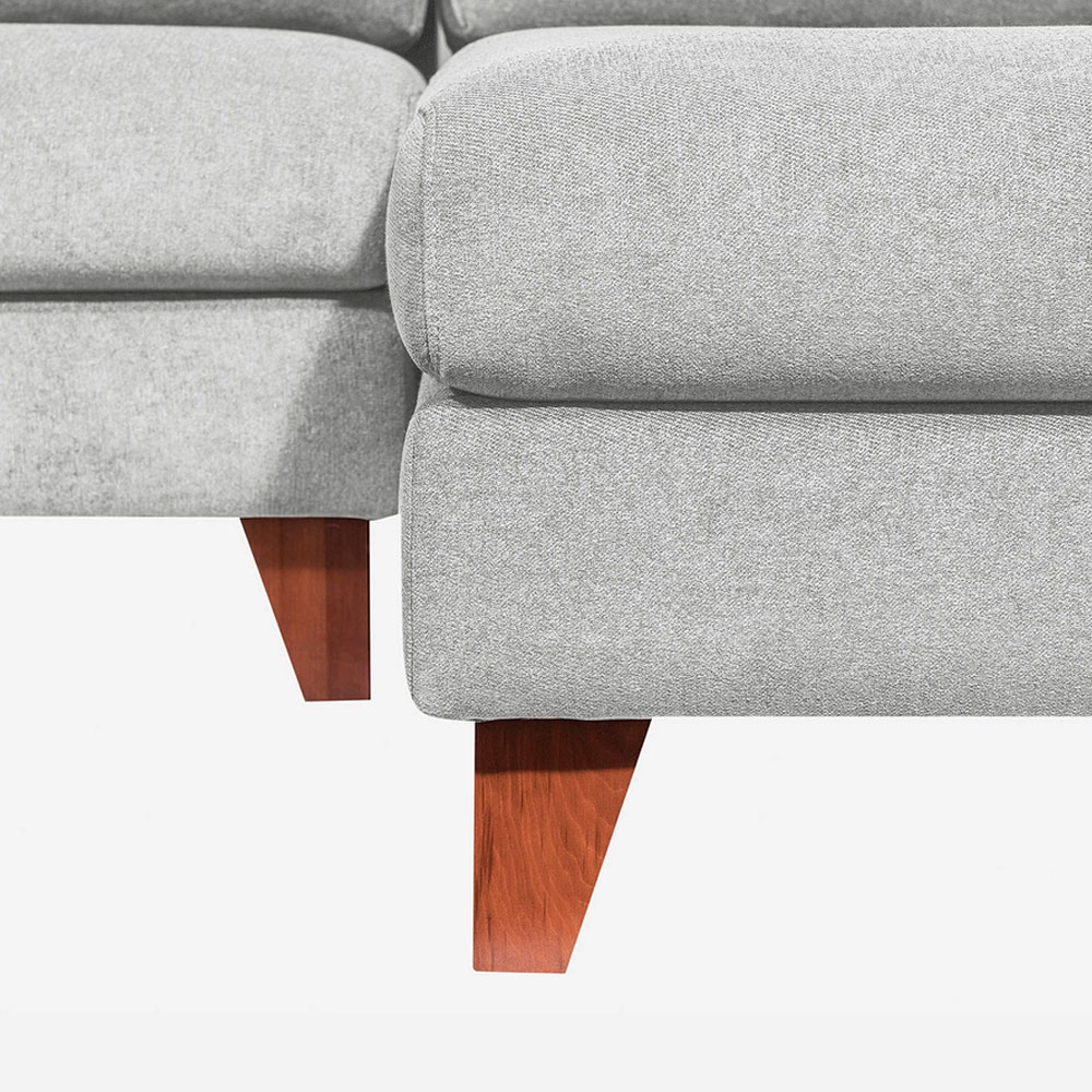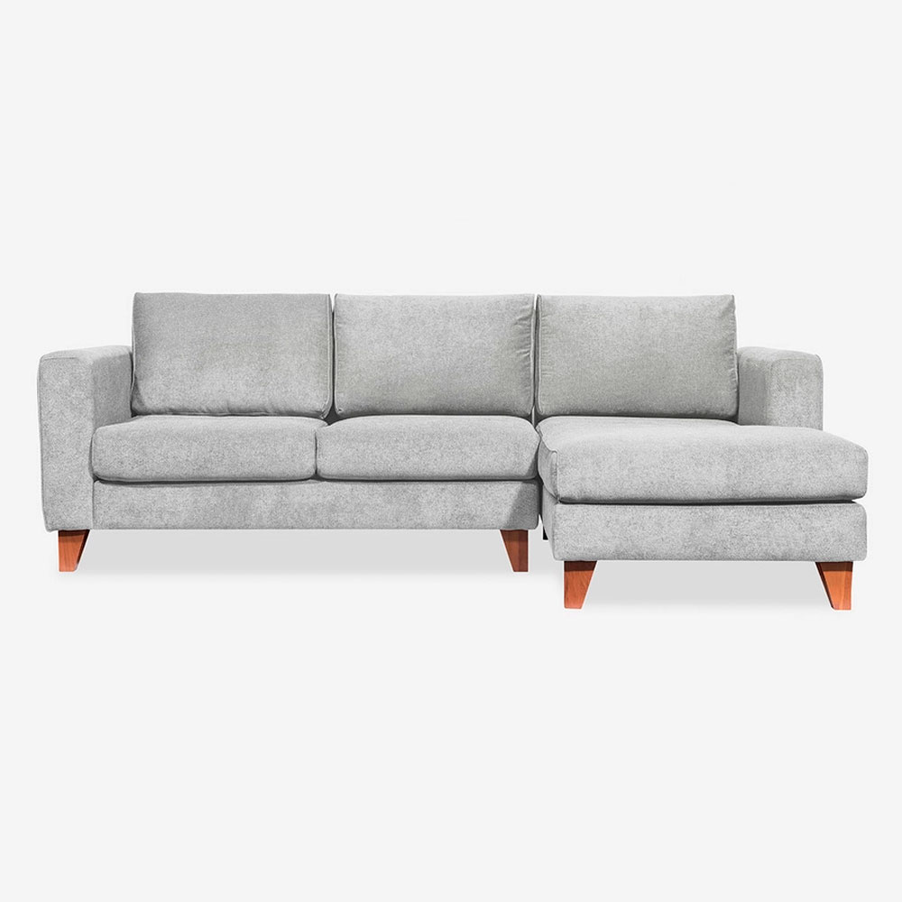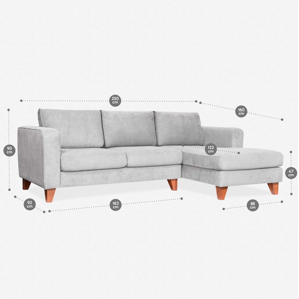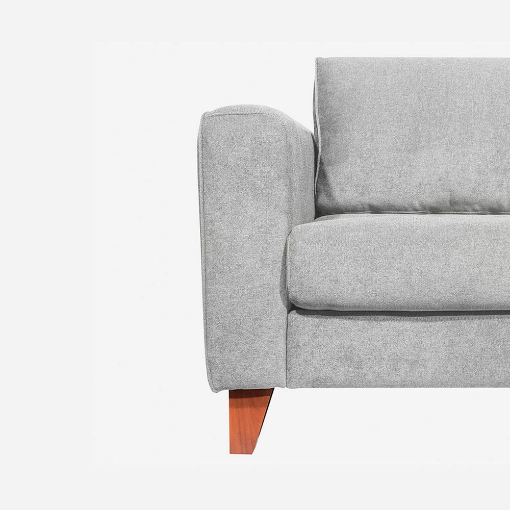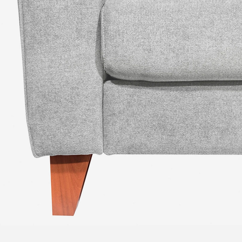 Sofá seccional con diseño contemporáneo gracias a sus líneas simples y cojines en asiento lisos. Muy cómodo gracias a su sistema de suspensión sinusoidal y firmes patas de madera. Hecho en Chile.